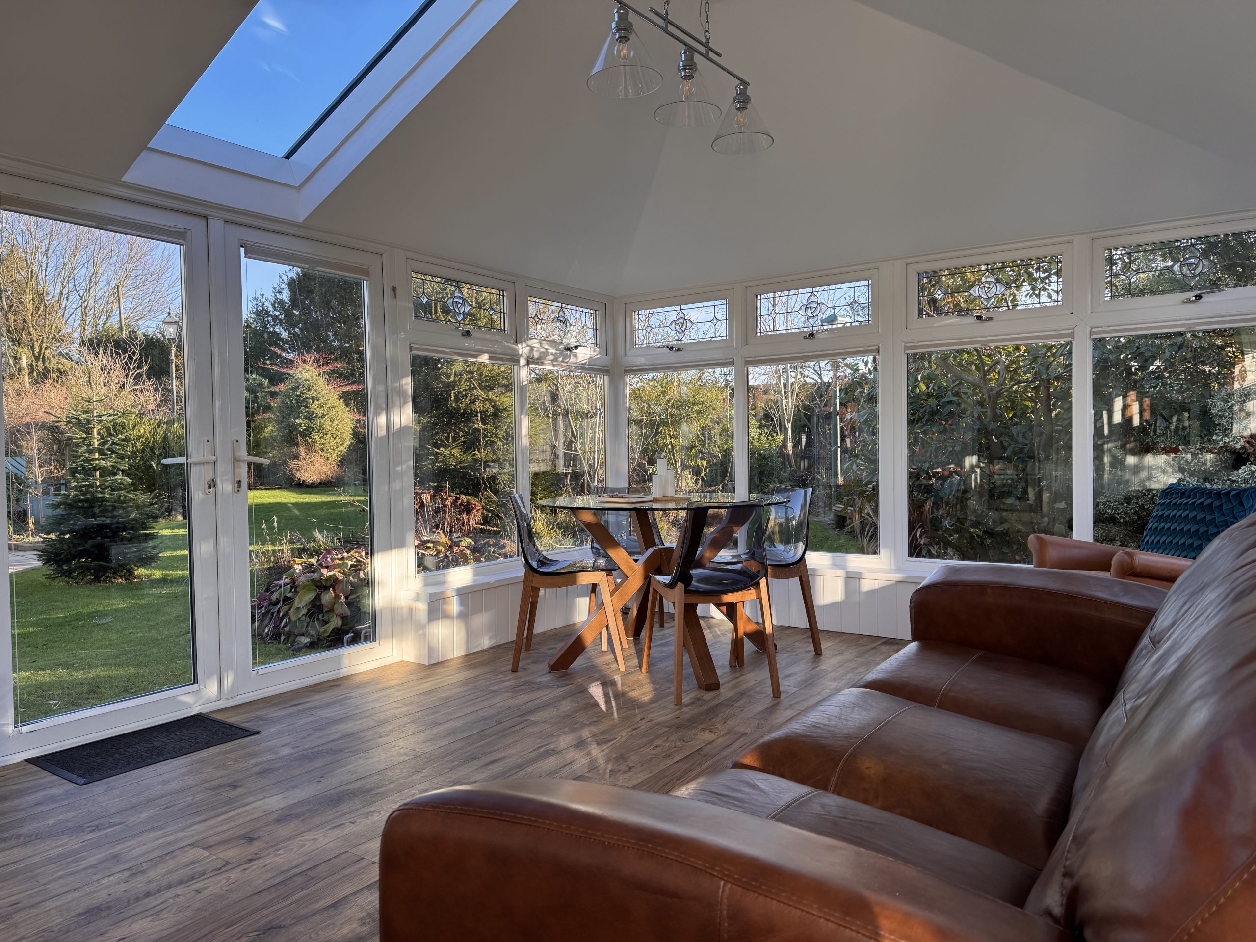 Comfy sofa and armchairs, cushions, side tables with lamps, dining table, smart TV with Netflix, USB sockets, electric wall heater, books and games